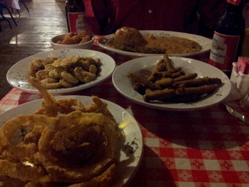The kids instantly went to the playground. Mark and I got dressed and drove into Eunice to buy pizza for the kids. We dropped the pizza off and headed to Villeplatte to the Crawfish Barn where we had a fabulous dinner and a great waitress!! Then we headed back to the campground to the dance. The dance was in an old barn — and it was cold! 36 degrees! The barn had a full bar and a great dance floor. There was a hipster film crew there filming a Louisiana Tourism commercial and that was fun. It was a fabulous night!