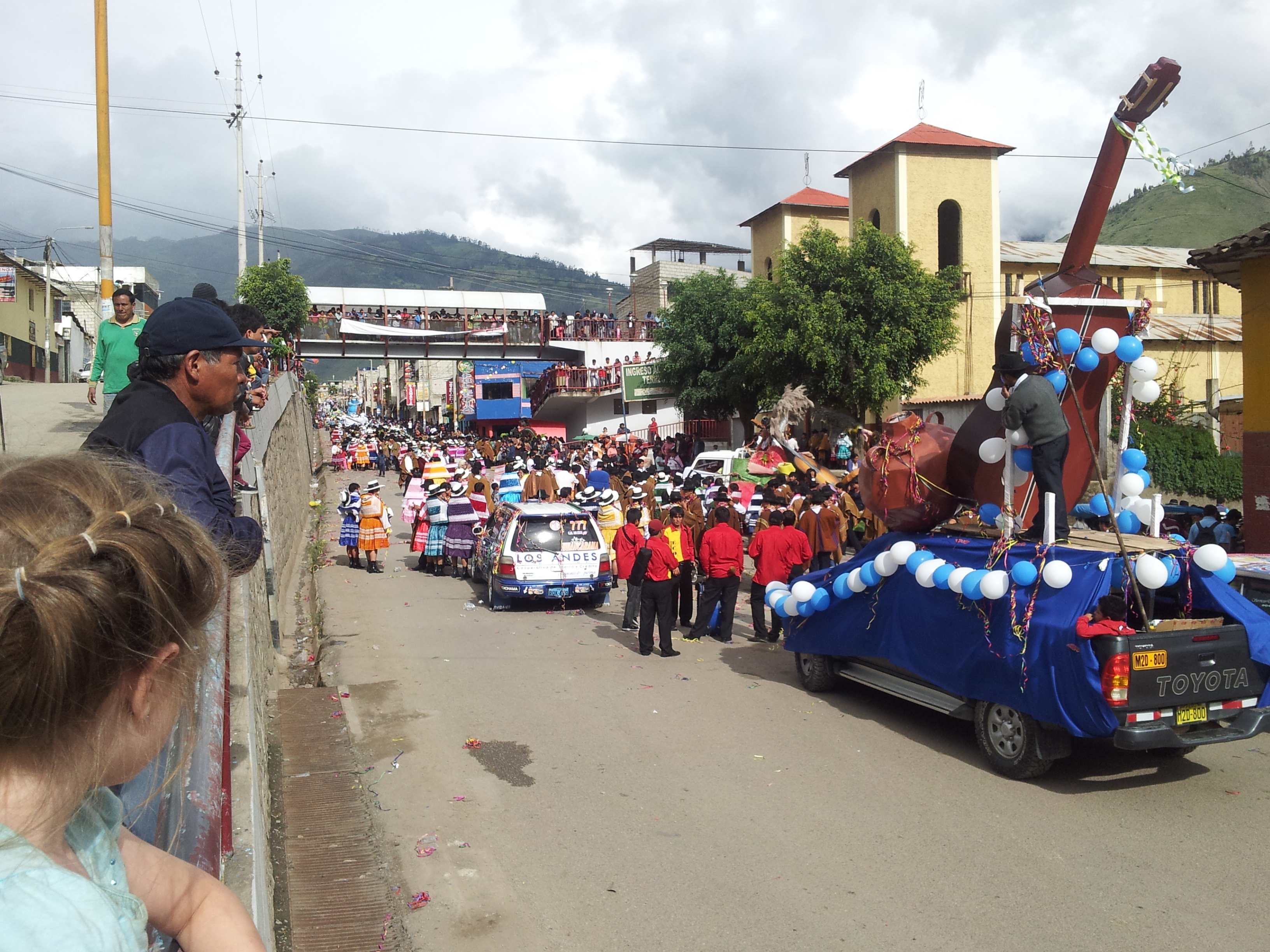 We were driving to Cusco. The road had lots of hills and turns and we were mostly going uphill, we made it to 15,000 feet. We saw alpacas and chinchillas and llamas. We were driving down the road and we made it this town called Abancay and there was a huge parade going on! We were stuck behind a truck because the parade was going on and the truck couldn’t move. We were stuck there for a long time. We got out and walked around. The parade was very big, there were dancers that also sang, they were dressed in skirts and blouses and shawls that were in all different colors like red, blue, pink and orange. There were floats and there were people playing flute and drums and guitars. People were throwing water balloons and spraying foam at everybody. A water balloon hit Sylvia! There were people on top of buildings that were dumping water on you. We went and camped at a restuant. Dad, Ryan and I went to town to get some money. We walked over a mile and then we got a combi which is a big van like a bus that took us to a street and a couple got off and showed us where the bank was. We walked down the street and people threw water balloons and sprayed foam all over us! Dad got money from the ATM so we headed to look for water. We bought a box of water and while Ryan was carrying it someone sprayed him all over with foam! We bought eggs and toothpaste. We were looking for a taxi but no one knew where the restaurant we were going to go to was but finally the third taxi knew where it was. We were driving and he told us there was going to be another parade tomorrow and I wanted to stay here for the parade. He dropped us off and we got back in to the camper and I told mom about our day. She told us that the lady who worked at the restaurant was making dinner for us so me, Max, mom, dad and Jack went to the restaurant. Jennah, Ryan and Sylvia stayed in the camper. What we had for dinner was chicken, pasta and potatoes and to drink we had cocacola. She gave us cocoa tea. Mom went and got Ryan to try the cocoa tea. I went back to the camper with Max and Ryan and dad stayed at the restaurant and talked and drank cocoa tea. It was a fun day.