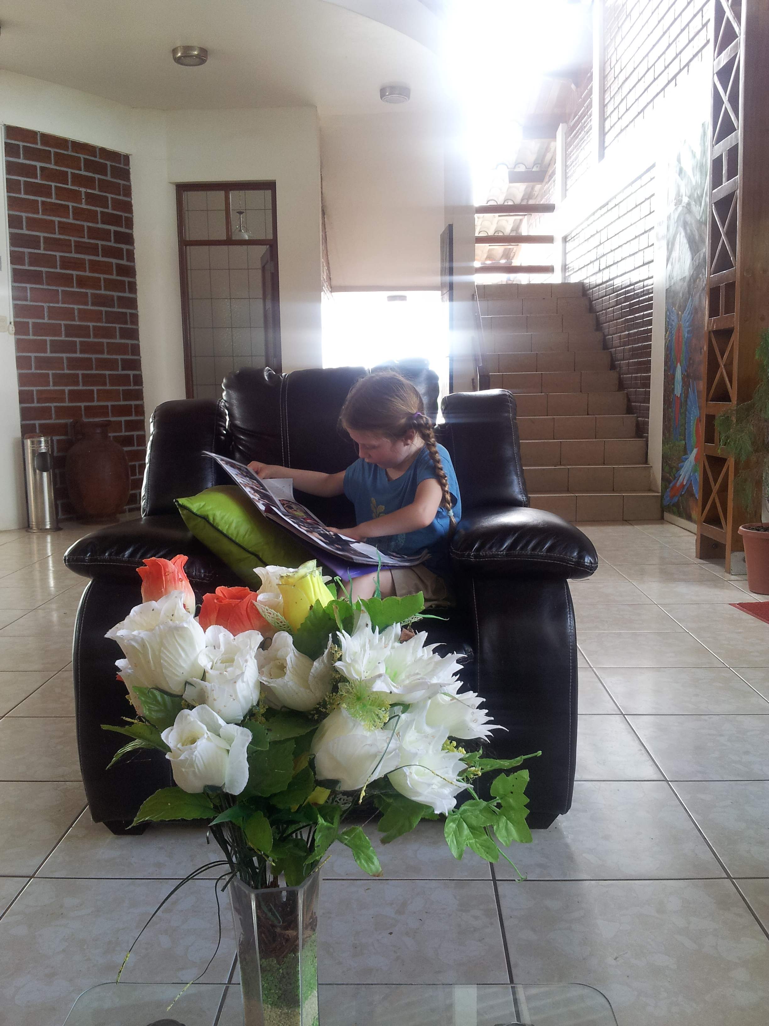 It was another day of lazing around the hammock while there were several false departures. Sylvia found a giant black beetle that she kept picking up and playing with it, letting it crawl up her arms and whatnot. It was pretty creepy. Then Mom stepped on it and the fun ended.