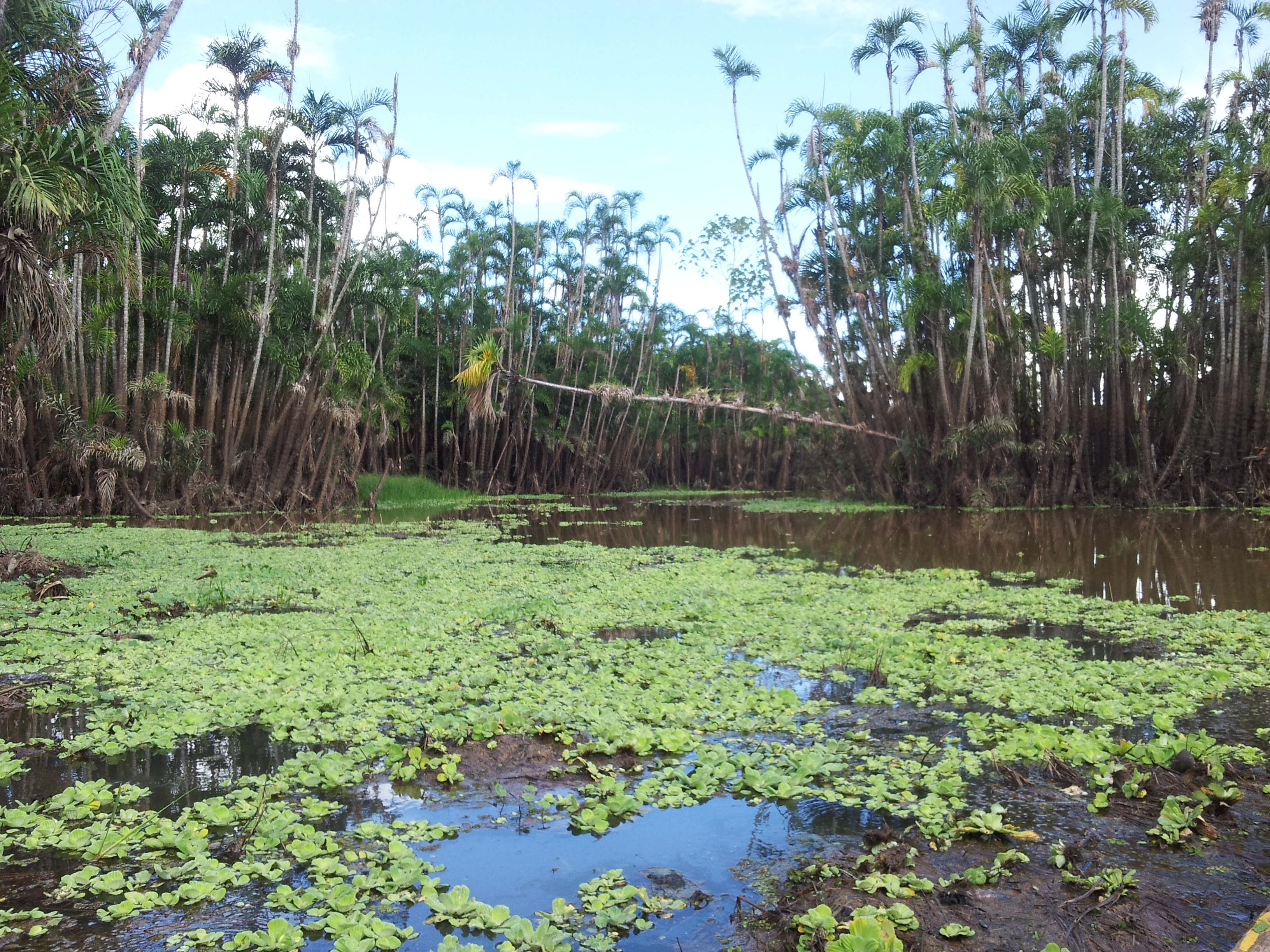 We borrowed a dugout canoe and floated around the jungle lake. They were actually dugout of one log.