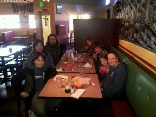 Woke up this morning at 5:30and Team DeCorso was on the road before 7. We dropped Ryan off at East High School for his ACT and then we did a leisurely driving tour of Denver and stopped at Benny’s Restaurant for breakfast (http://www.bennysrestaurant.com/). We had Famous Breakfast Burritos (eggs, potatoes, smothered with green chile and cheese on top) and Sloppy Breakfast Burritos (eggs, potatoes, peppers, onions, tomatoes, jalapenos, chorizo, bacon, sausage smothered with chile verde with cheese on top). Annabelle had steak & eggs.
