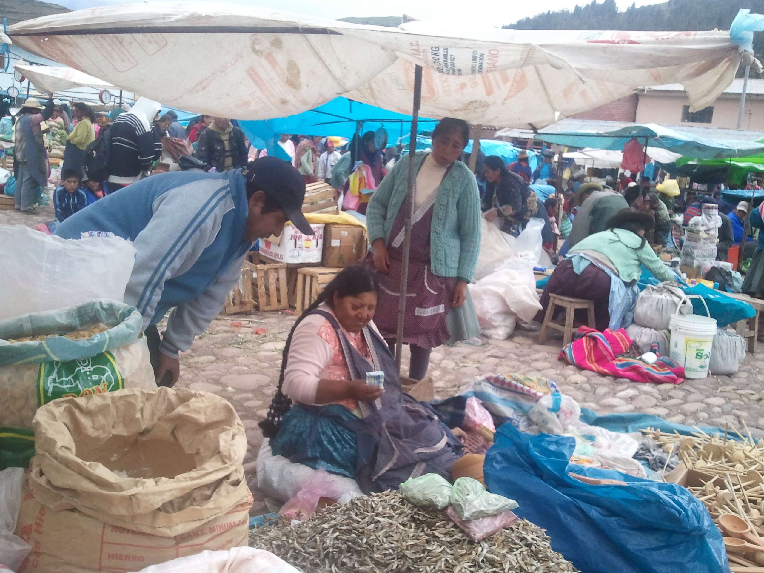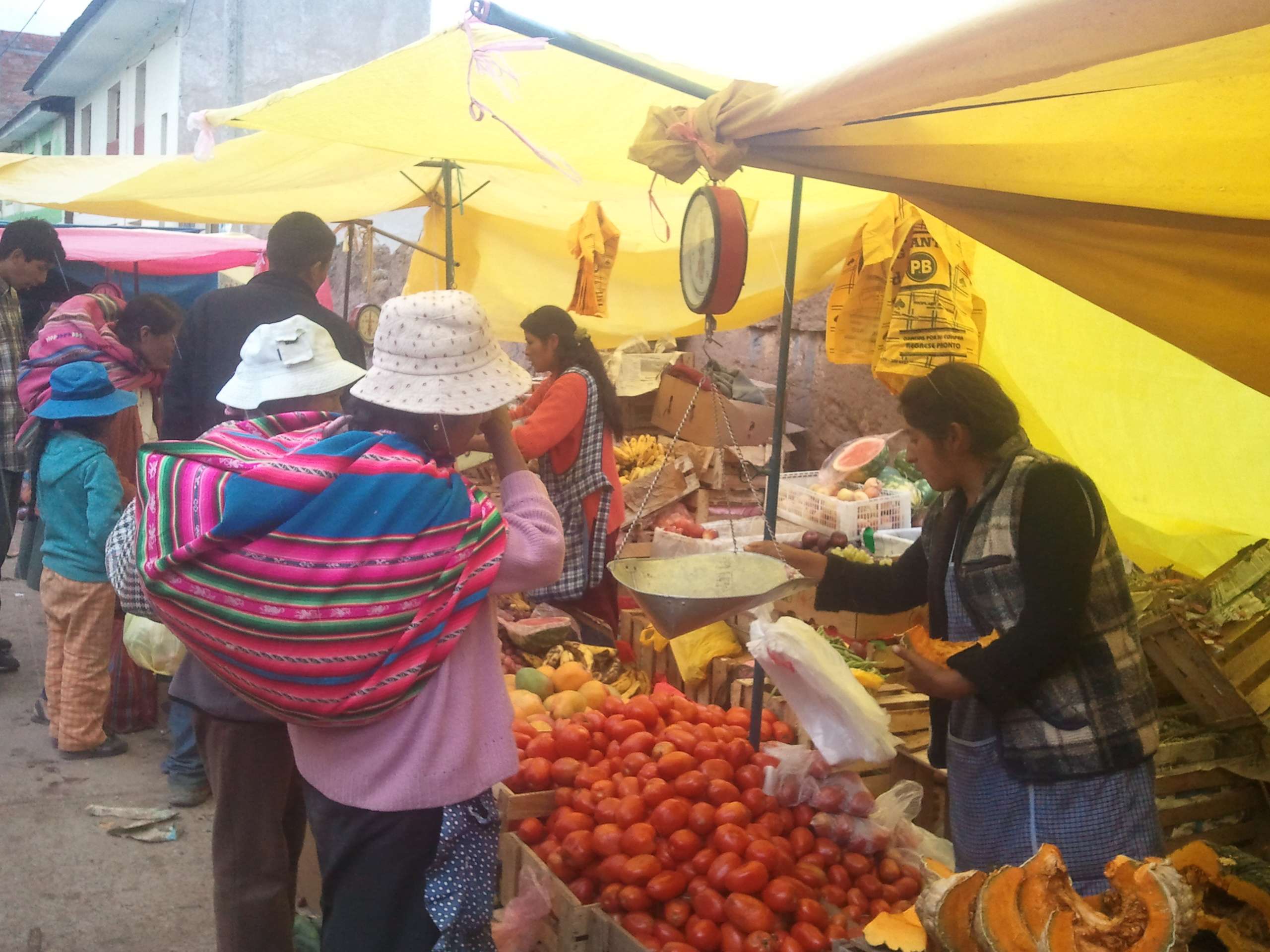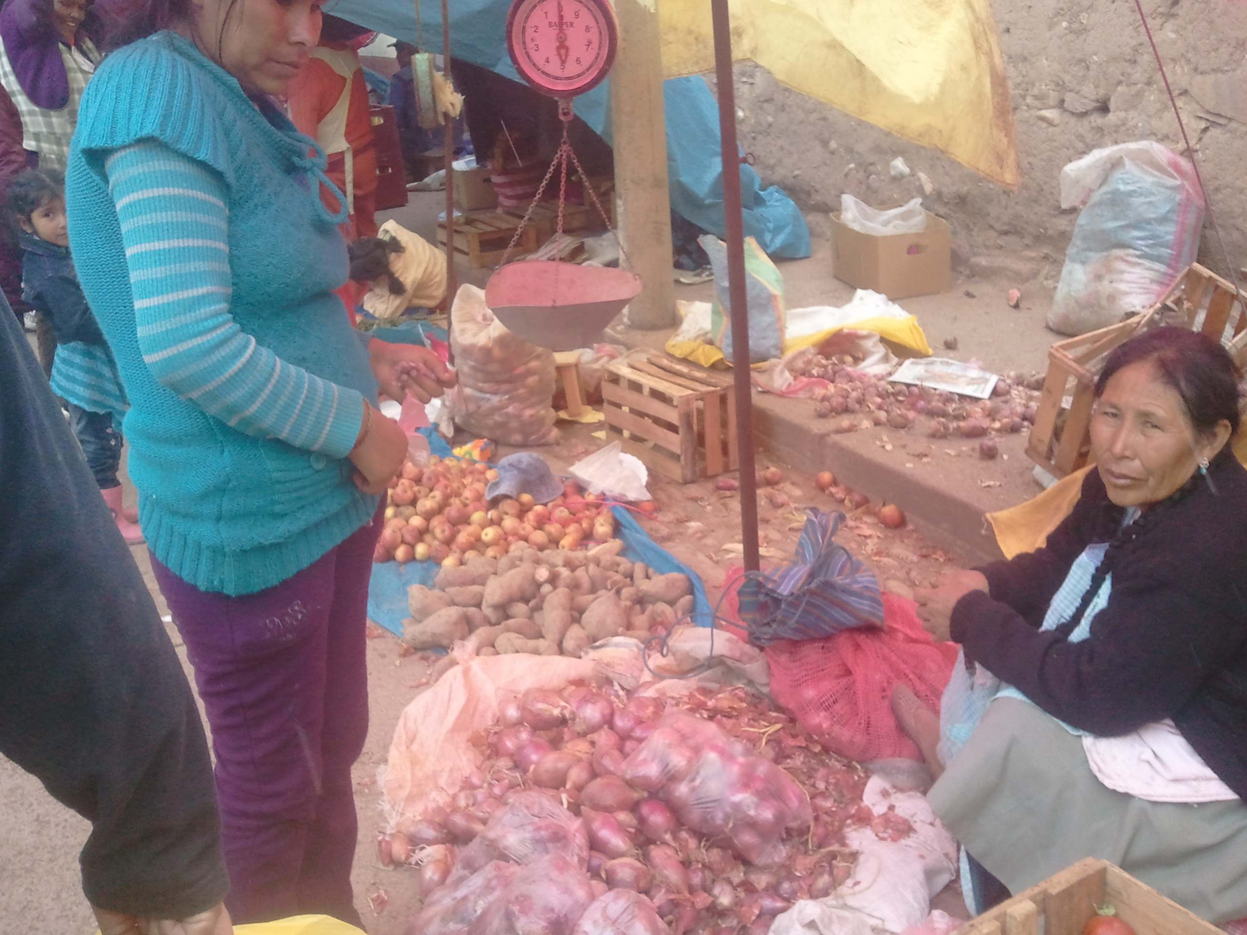 We spent Saturday morning shopping at the market in Abancay, where we bought a chicken (neck and feet removed), potatoes, water and bread.
