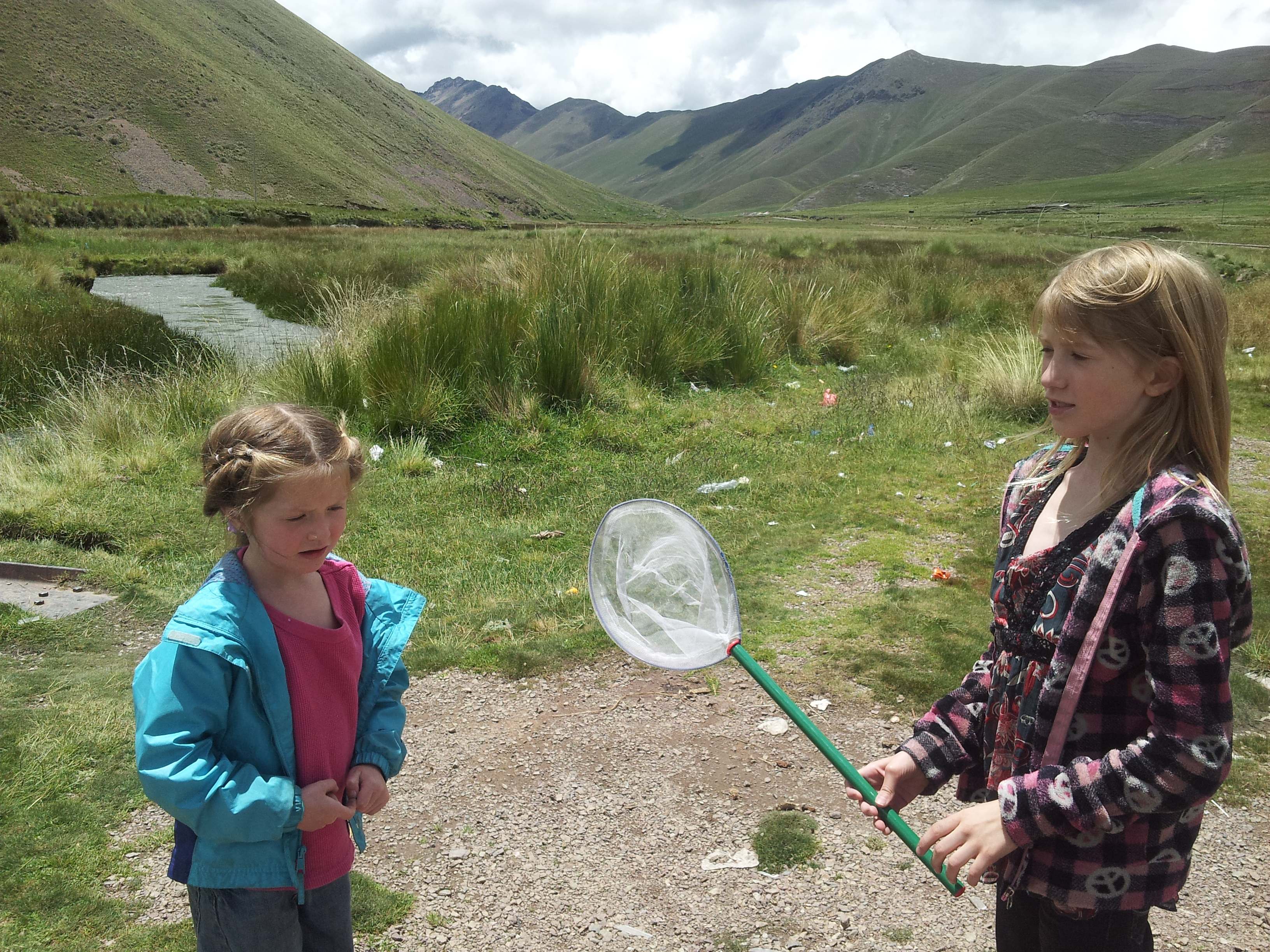 We were driving and we saw hot springs.  We pulled over and camped there.  We went to the hot springs.  It took forever to get Jack’s swim suit on!   We got to go in the private one.  That means where its a building and its like those buildings with pools in it and they have windows you can see through them?  Like a greenhouse with a pool in it.  The next morning we didn’t go to the hot springs because of the altitude made us sick a little but I only throwed up once.  There was a train we saw driving to Puno.  We went to a store but it wasn’t really a store it was holded up by sticks and had tarps all over them.  Me and Annabelle really wanted to buy a llama that was standing up and mom said we should buy it!  Then mom went back to the same market and got two llamas for me and Annabelle,  I got the brown one, it was sooo fluffy and Annabelle got a white one.  It was made out baby alpaca fur. They were both babies.  I named mine Rosabella.  Annabelle named hers Fluffy.       Inca cola is a soda.  It’s yellow but it has caffeine in it.  I like it.