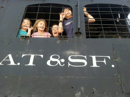 Next stop was accidental. Sylvia needed the bathroom so we stopped in front of this building which was the Mullinville Library. Libraries sometimes sell books (and we always need more) so while Sylvia went to the camper bathroom, we went into the library where we went inside and met the very nice librarian. We asked if they had books for sale and she showed us boxes and boxes and a room of books. We could hardly leave. Ryan, Jack and Jennah emerged with a stack of obscure books, including Jack’s Best Loved Poems.