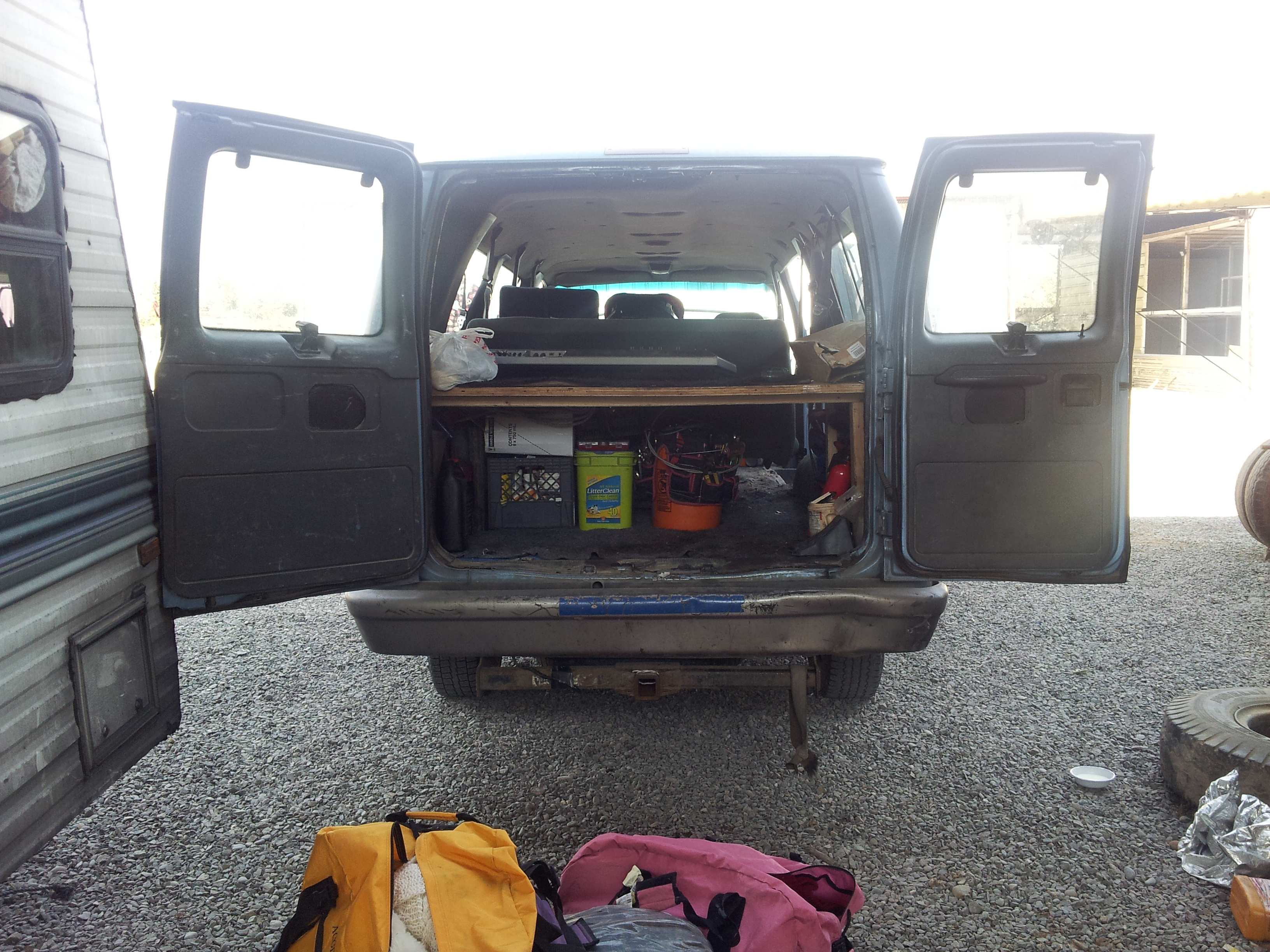 There was a lot of measuring and then they got a ramp with a long straight run so the van would not hit the container at an angle and Mark drove it in – and it fit!
