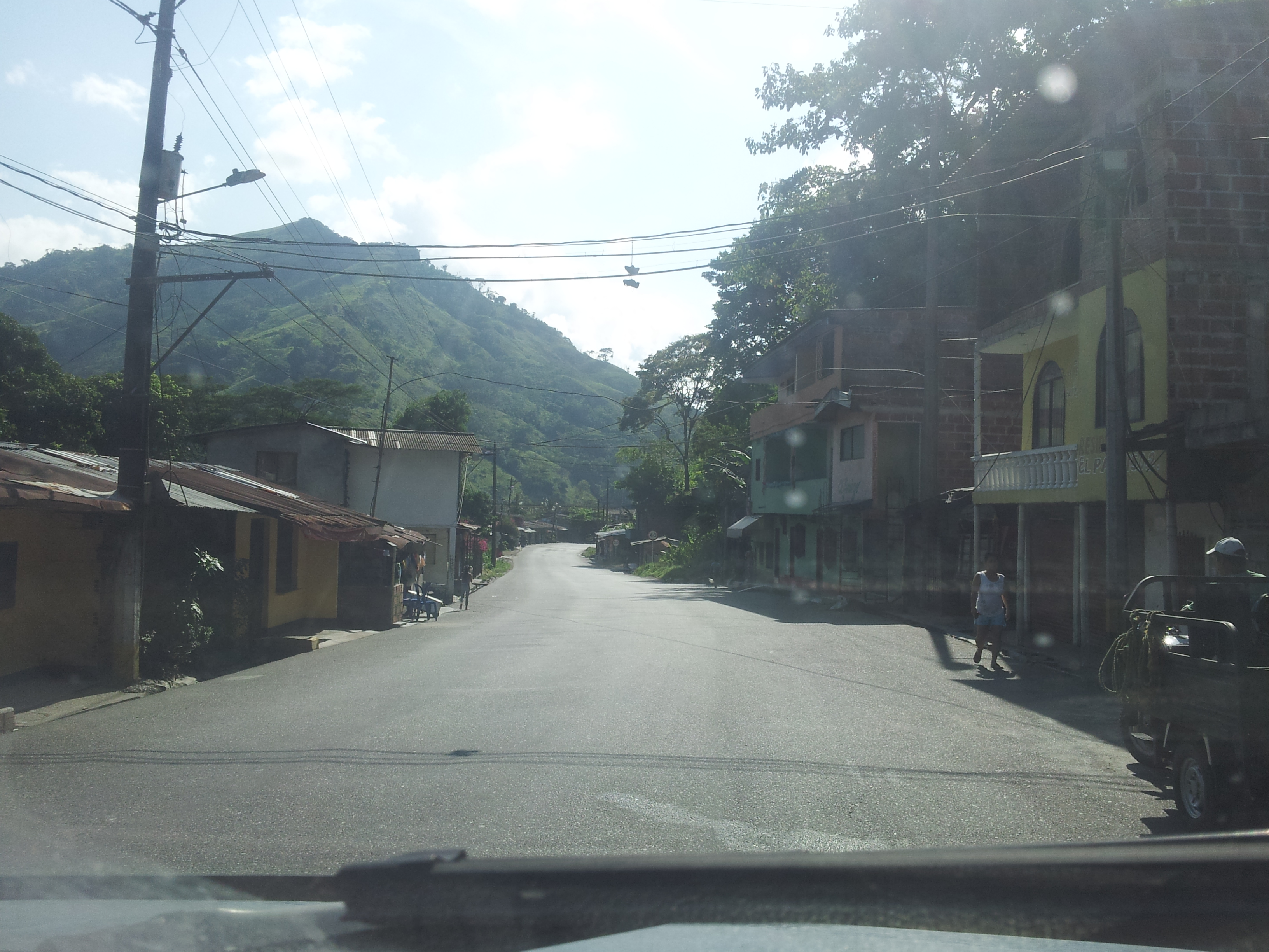 We drove south towards Cali out of La Pintada. Another 200km of winding mountain roads through rural Colombia. It’s stunningly beautiful, but after a week and a half of it, you become a little jaded. The sun is hot here, nothing like the sun in the US, and especially not like the sun in Alaska. In Alaska, the sun contains barely any heat, like holding your hand inside the lampshade of a 70w bulb. Here it’s like holding your hand near a gas stove. Our van overheats going up the huge hills, and we have to turn the heater on in the already hot climate. I think I’ve acquired some minor heat resistance from the 110F car. That day we figured out that we could take the one window off to allow some airflow, which helped tremendously. The temperature decreases substantially as you go up—from the mid 90s at sea level to the mid 70s at 6000 feet. The difference might be from Houston to Denver, but here you can traverse it in thirty kilometers.