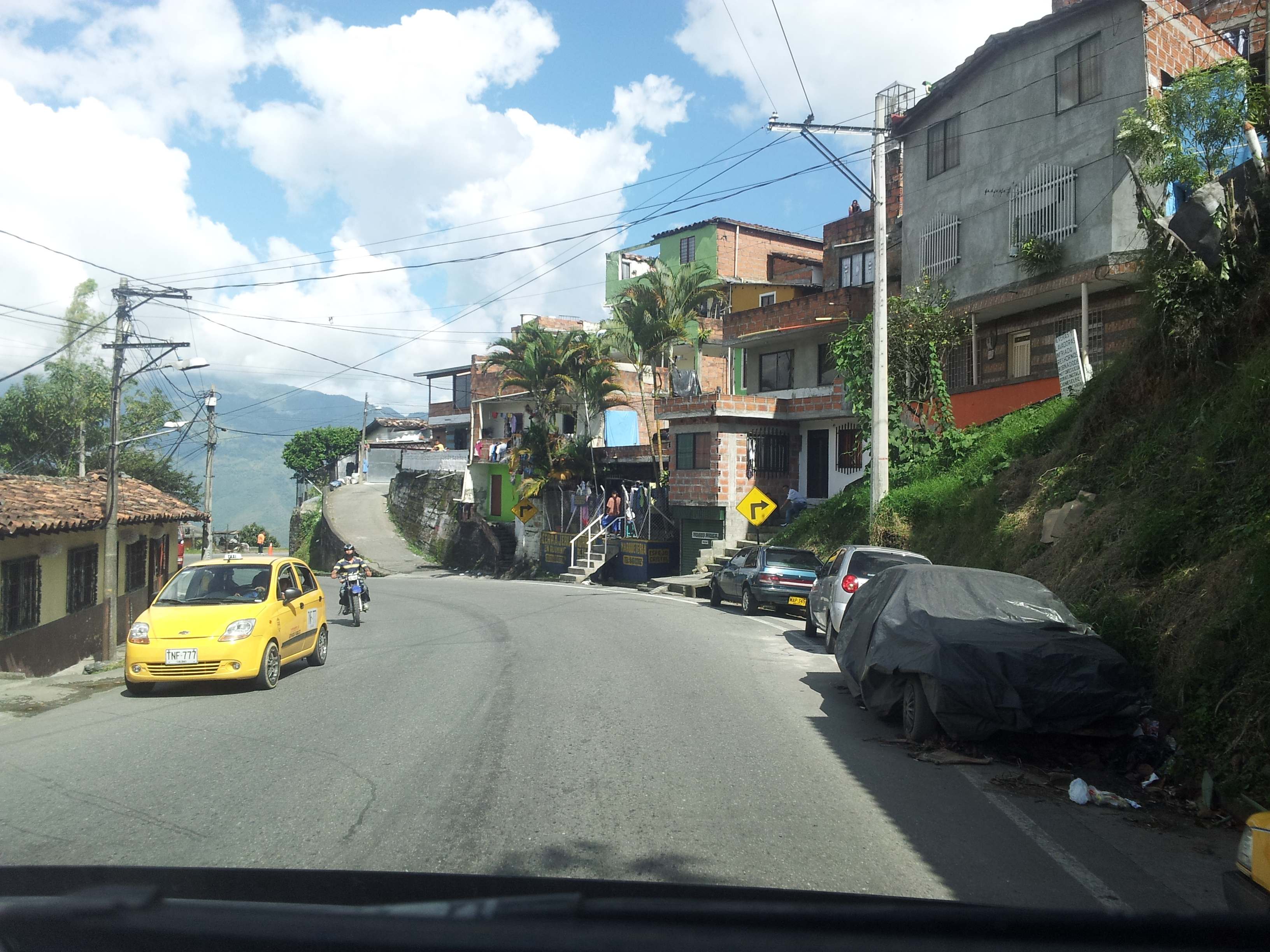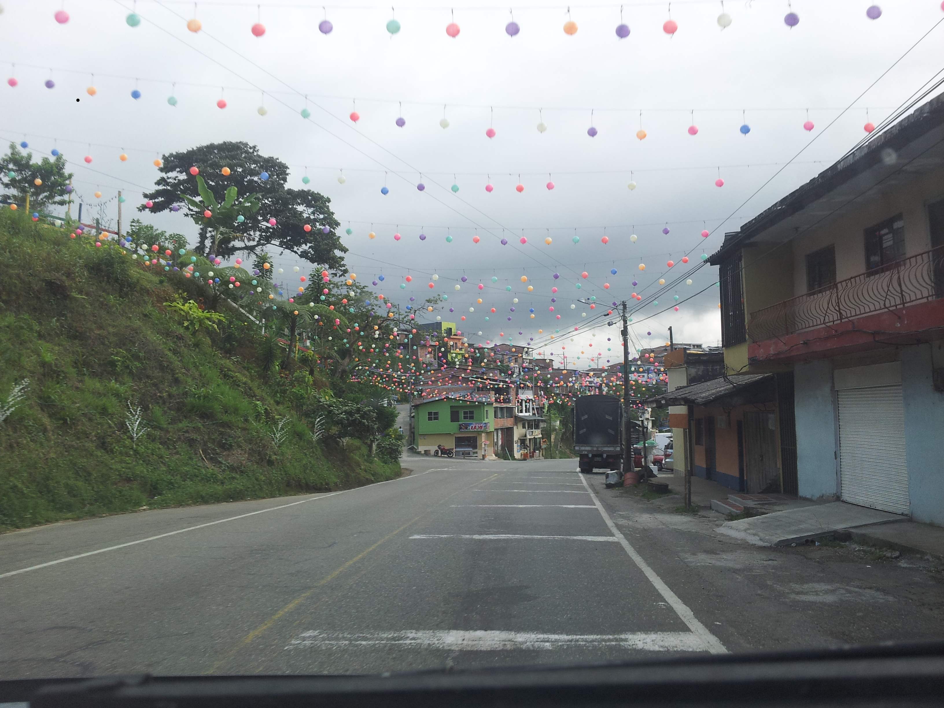 We spent Christmas in Santa Rosa de Osos, behind a 24-hour travel stop/cafeteria/quesodero. We left the morning of the 26th and headed south towards Medellin. We had wanted to stop and walk around Medellin, but the traffic was too chaotic, and the only parking lot we found was quite a distance from where we thought the city center was. A lot of businesses employed armed security guards to patrol their property with slackly-held pistol-grip shotguns. With safety and logistics in mind, we decided to move on, albeit disappointedly, without seeing the city.