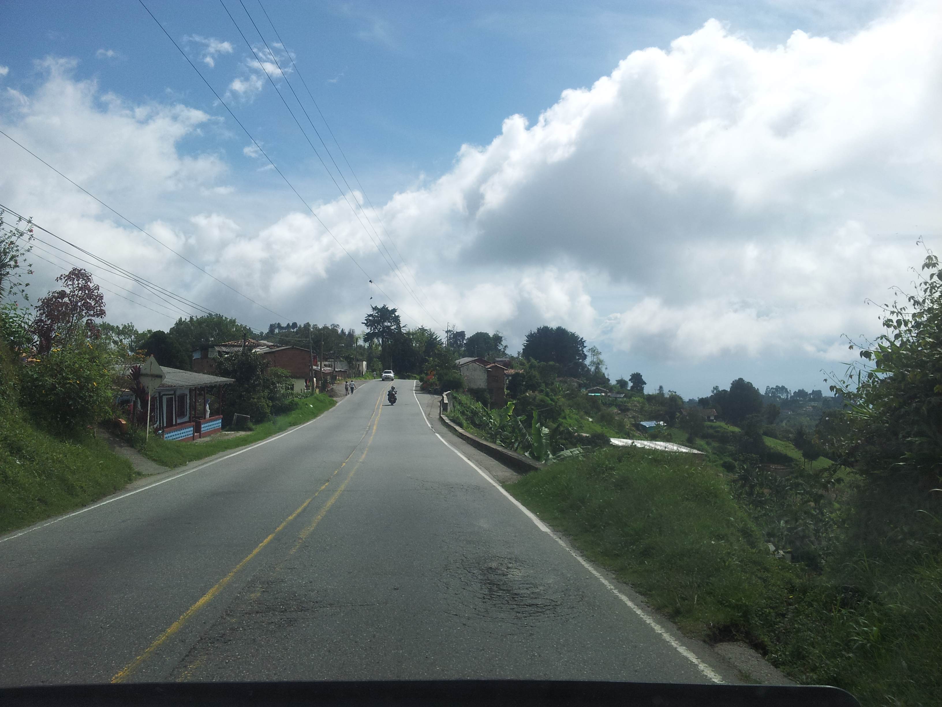 The next day we got up and stopped in town to attempt to get the address of the family we talked to the first night in La Pintada so we could send them postcards. It was then that we realized that Colombia might not have a national postal service. We talked to them for twenty some minutes trying to convey the concept of postal mail, and ended up with two pages of contact information (no physical address still). I wrote down the name plate on their store, their names, and the road; I think with that I can deduce how to get mail to them if something like that does exist in Colombia.
