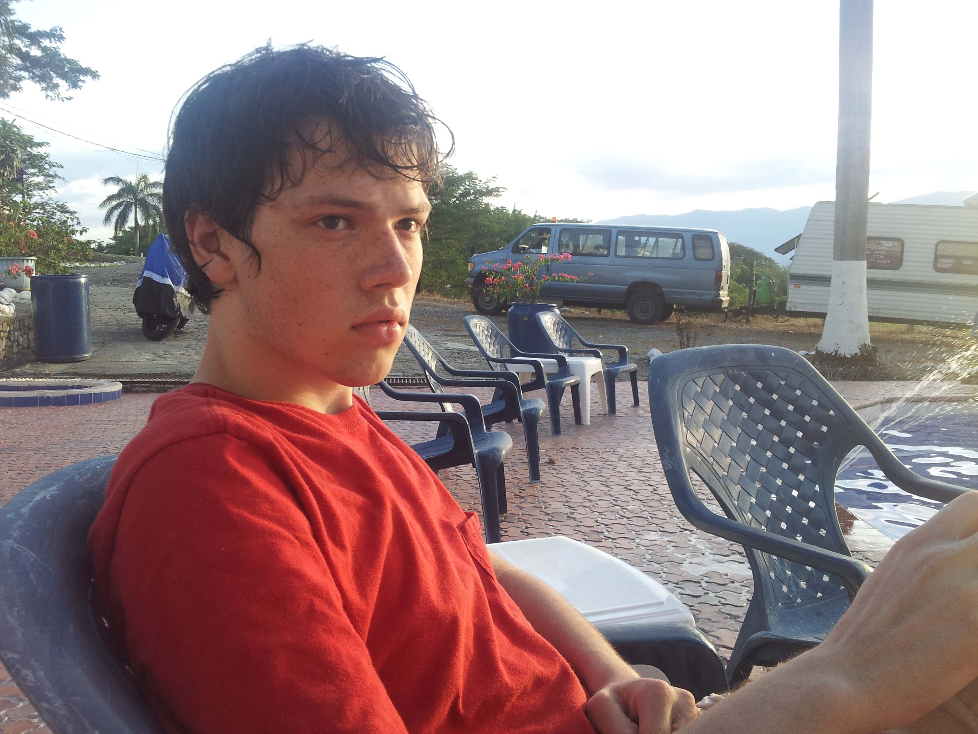 We got out. It was even hotter here than in Cartagena. The air was so thick with moisture we could almost not breathe. The camper had cooled down to about 100 degrees and we had to make dinner. We had some food in the cupboard but the fridge had not cooled down yet so we made some pasta. We sat in the camper, sweating and hot and feeling kind of overwhelmed and down. Our license plate was stolen. We had a motorcycle stuck on us. We had gotten stuck twice. The police had nearly immobilized the van. And we had not even gone 35 miles. It was suffocatingly hot and we were just literally dripping with sweat.