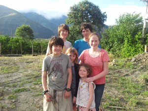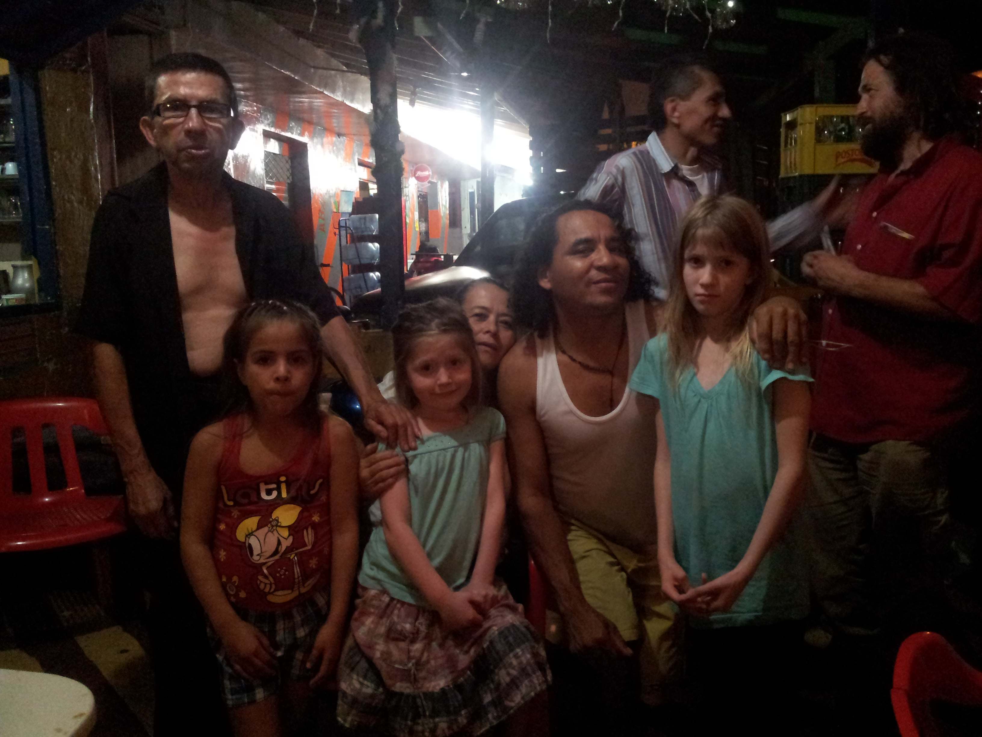 We needed water (sold in bags here) so Mark and Jack headed off to find water and returned to tell us that there were a bunch of kids outside. I peeked out and there were about 20 kids looking at me. So naturally I asked them if they wanted to come inside. And of course they did. And then their parents came over and came inside. We talked and they said there was a man in the town that spoke English so they dispersed some children to get him. He came over and we all began to talk. It was clear we were about to eat so the English-speaking man, whose name was Hilo, said we should finish eating and then come outside and sit in a circle with them. We agreed. As we finished our pasta, we could see them bringing chairs and chairs over and setting up a circle 2 feet from our door. We went outside and there were more than 50 people smiling at us. They had brought eight chairs for us. We sat down. And then the best Solstice Party ever began. They brought us gifts and snacks, using English / Spanish phrase books to ask us how to say things. Jack and Ryan were flanked by girls each. Girls were putting earrings on Jennah. Laptops appeared with Google Translate and Facebook. We tried to ask if avocados grew there – we had seen these gigantic ones in Cartagena. The word for avocado did not translate with the phrase book or Google Translate and in the process they brought us a bunch of exotic fruit we had never even heard of. One had skin like an avocado but was hollow inside except for a blob of jelly with some seeds and it was delicious! Tangy and sweet. There were berries with hard skins and seeds that Sylvia loved. And then at one point, we had a group realization about avocados and it was a beautiful moment. They gave Sylvia a teddy bear and at one point Annabelle asked for the Spanish word for tag and when she learned it, all the kids took off to play. Annabelle and Sylvia went off to play inside a house. Several times, the girls began chanting beso (kiss).