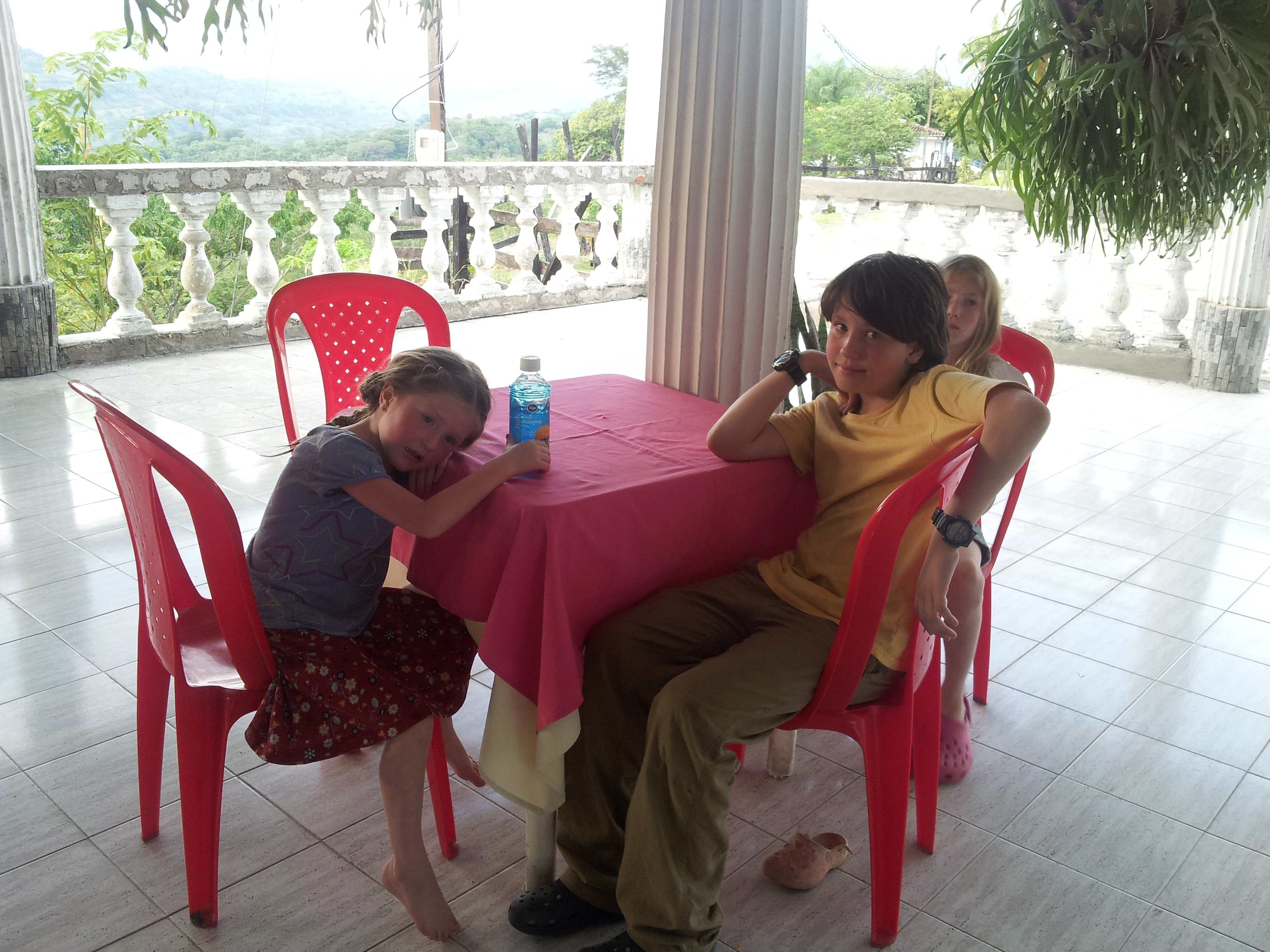 In the evening, we disconnected the van and drove into town and walked around. We bought popsicles and some supplies (potatoes, avocados, oranges for juice) and were headed back to the van. Women were gathered around the van peering inside – it was Sylvia’s car seat that they were looking at. The car seat led to a lengthy discussion which involved Sylvie buckling herself in as a demonstration. Car seats are completely unheard of in Colombia. We told them they were the law in the USA and there was much conversation about this. Our van is also quite the conversation starter, even without the Alaska plates. Kids always ask us why we have a bus as even minivans do not exist in Colombia.