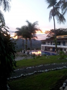 When we awoke we started to ascend up the mountains to a cooler, more enjoyable, temperature. The mountain drive was awesome. Houses were built on top of stilts that stuck into the sides of cliffs. The valleys were covered in fog, and the cliffs were covered in thick, green, pretty, jungle foliage. I spent most of the ride looking for monkeys out the window but sadly there weren’t any. Once we made it over the top of the one mountain we were on, we came to a small town which we then drove through. We descended until dark and stopped in Santa Rosa for the night and Santa Rosa is where I am writing this from. I think I’ll go now. Merry Christmas.